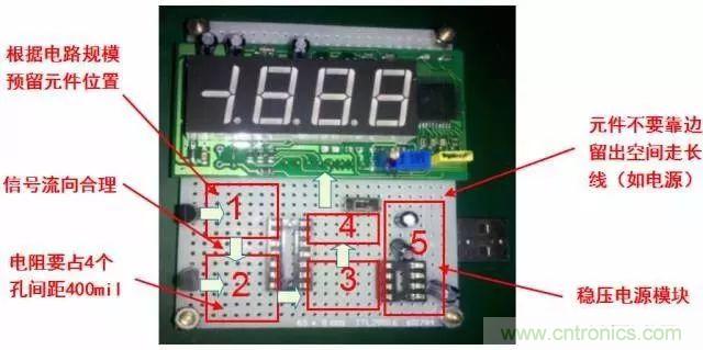 電源貫穿電路始終,合理的電源布局對簡化電路起到十分關(guān)鍵的作用。某些洞洞板布置有貫穿整塊板子的銅箔,應(yīng)將其用作電源線和地線;如果無此類銅箔,你也需要對電源線、地線的布局有個初步的規(guī)劃。