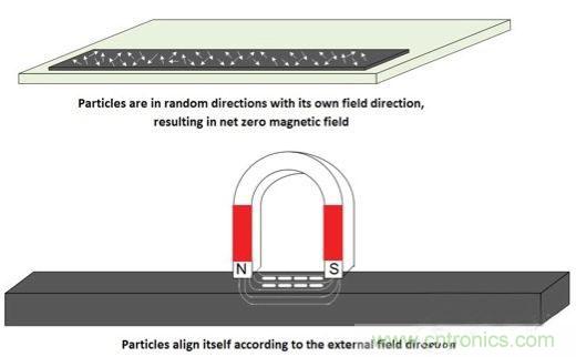 圖1:在外部磁場的影響下磁化材料按特定方向排列