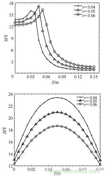 圖8:不同半徑下磁場強(qiáng)度H分布曲線