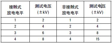 表1 接觸放電和非接觸放電方法的測(cè)試電平