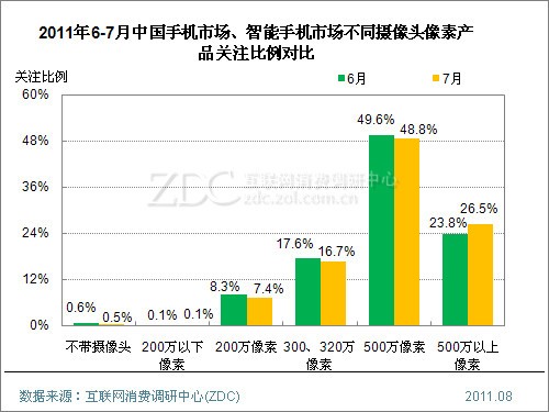 - 500萬以上像素智能手機關(guān)注比例較上月顯著增長2.7%