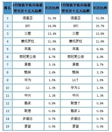 - 7月份諾基亞用戶關(guān)注比例為31.6%