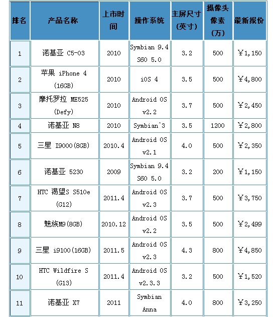 - 諾基亞C5-03領(lǐng)銜,蘋果、摩托羅拉產(chǎn)品緊跟