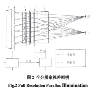 該方法能應(yīng)用于視差屏障、視籌照明、柱狀透鏡等傳統(tǒng)技術(shù)的改進(jìn)上.但是結(jié)構(gòu)相對(duì)較復(fù)雜且大大增加了顯示器的厚度。