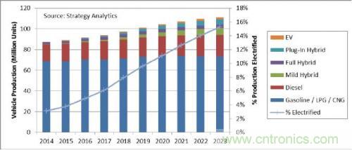 研究公司Strategy Analytics的研究表明,各類電動汽車的產(chǎn)量在汽車總產(chǎn)量中所占的份額預(yù)計將從 2016 年的 5% 提高到 2023 年的 15%。