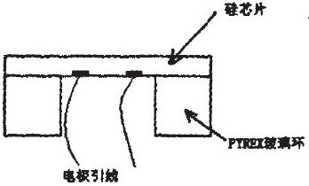 單一的硅片芯片只能作為一個(gè)檢測(cè)單元的一部分無(wú)法獨(dú)立完成信號(hào)的轉(zhuǎn)換,所以必須有特定的封裝使其具備壓力檢測(cè)的能力。將圖2中的硅片芯片與PYREX玻璃環(huán)靜電封接在一起。