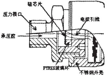 如圖3的敏感芯體封接在金屬螺紋底座上形成進(jìn)壓的腔道后成為一個(gè)可安裝的壓力測(cè)量前端,見(jiàn)圖4。